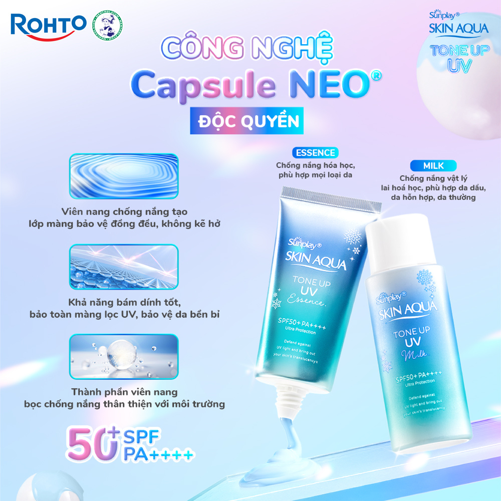• Công nghệ Capsule NEO độc quyền chống nắng phổ rộng bảo vệ da trước mọi tia UVA, UVB, ánh sáng xanh, các tác nhân ô nhiễm & gây lão hóa sớm cho da.